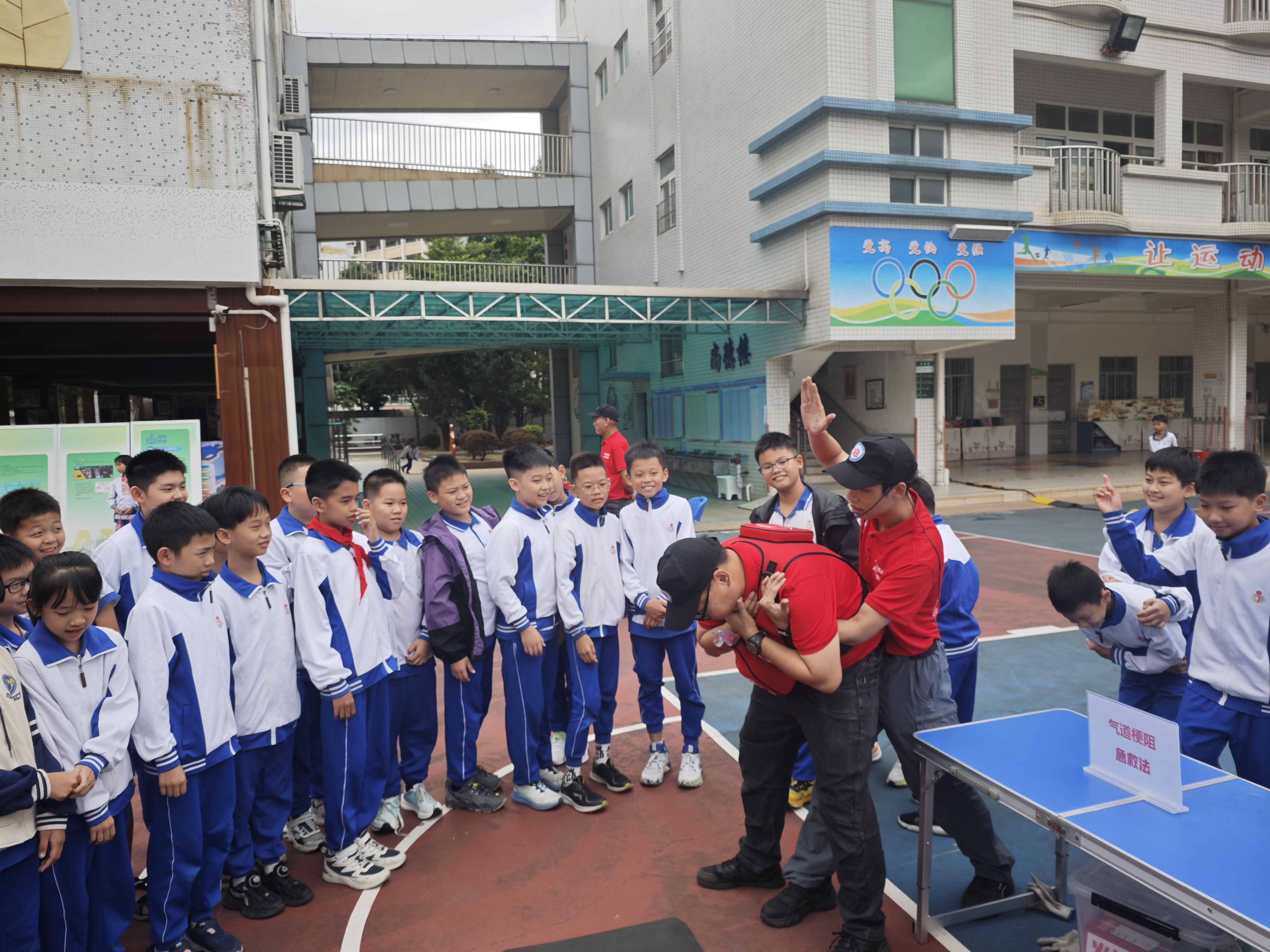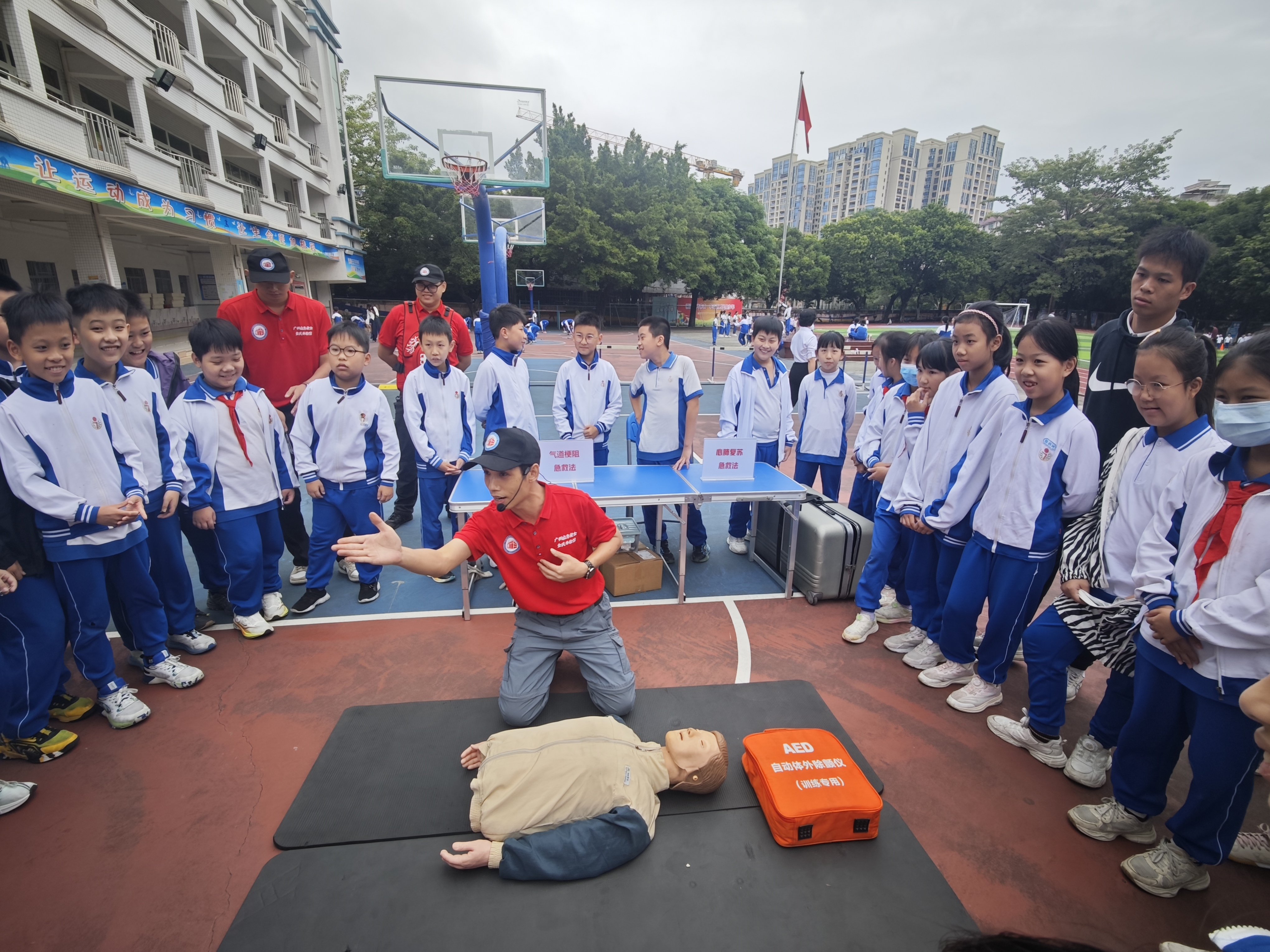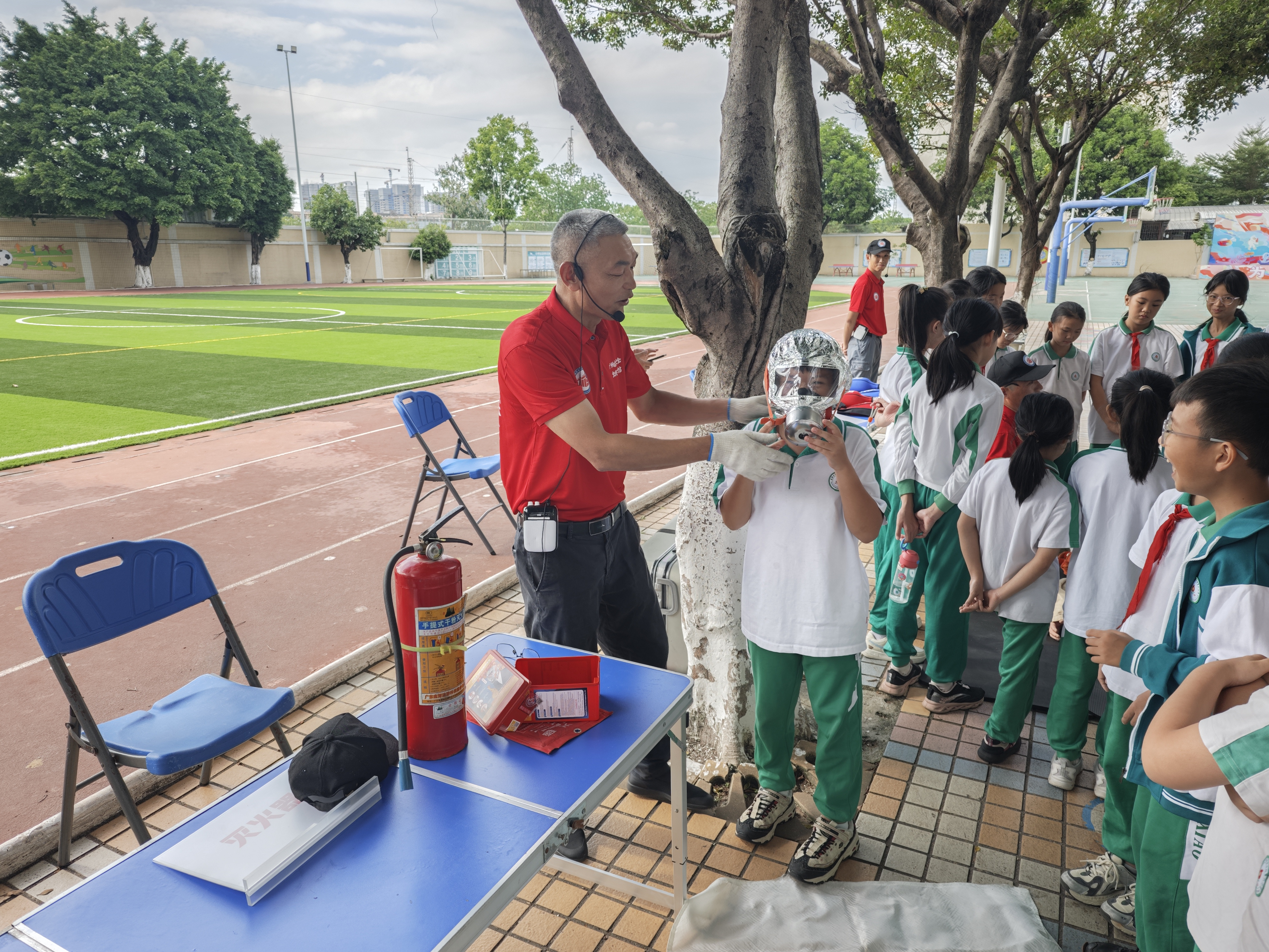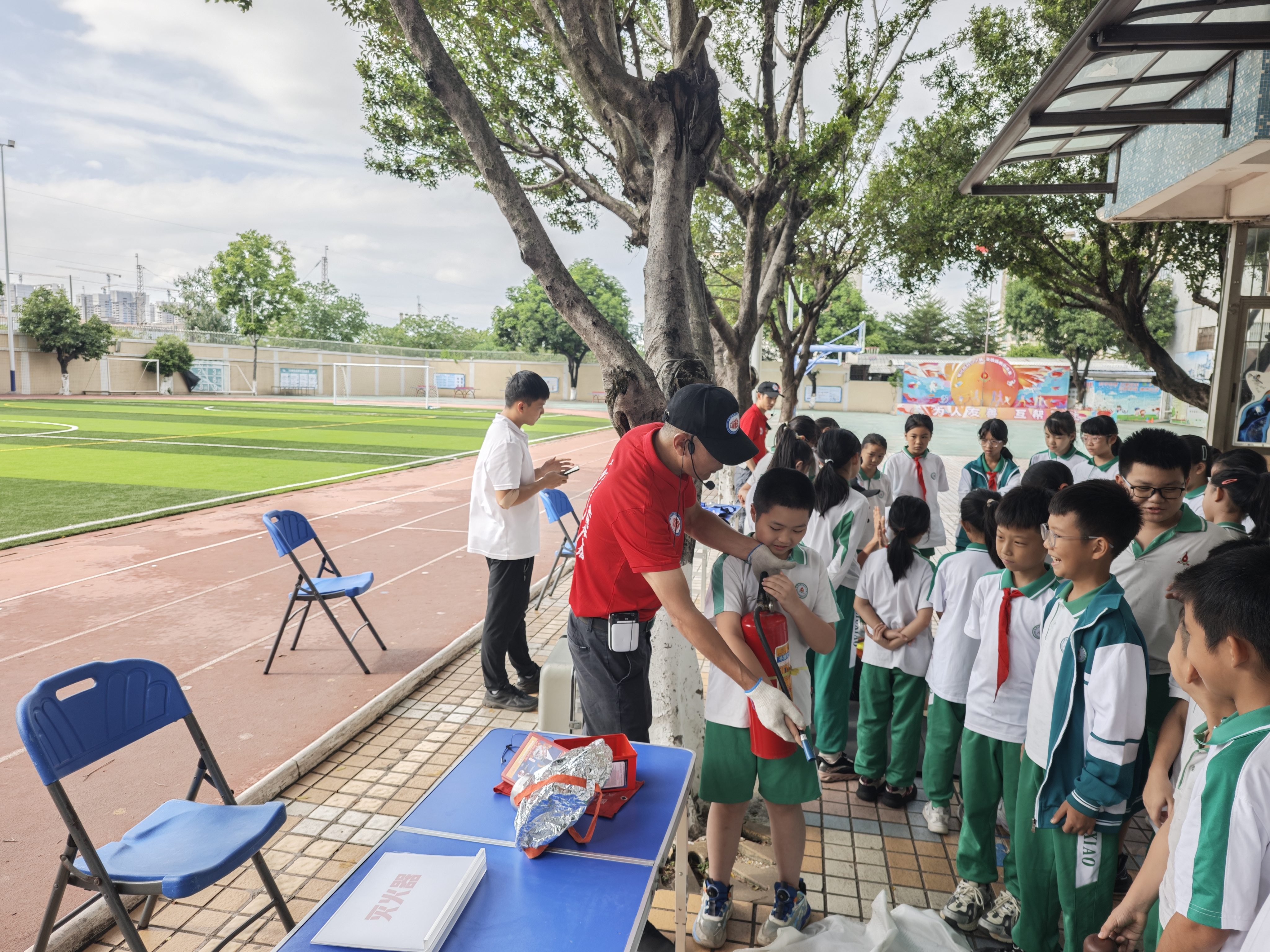 急救技能教学与实操区域同样热闹非凡。宣讲员向学生们详细演示了灭火器和防烟面罩的使用方法、心肺复苏和海姆立克急救法的操作流程,以及自动除颤仪的使用技巧。学生们认真聆听、仔细观察,并积极参与实操练习,在亲身体验中提升了急救能力。