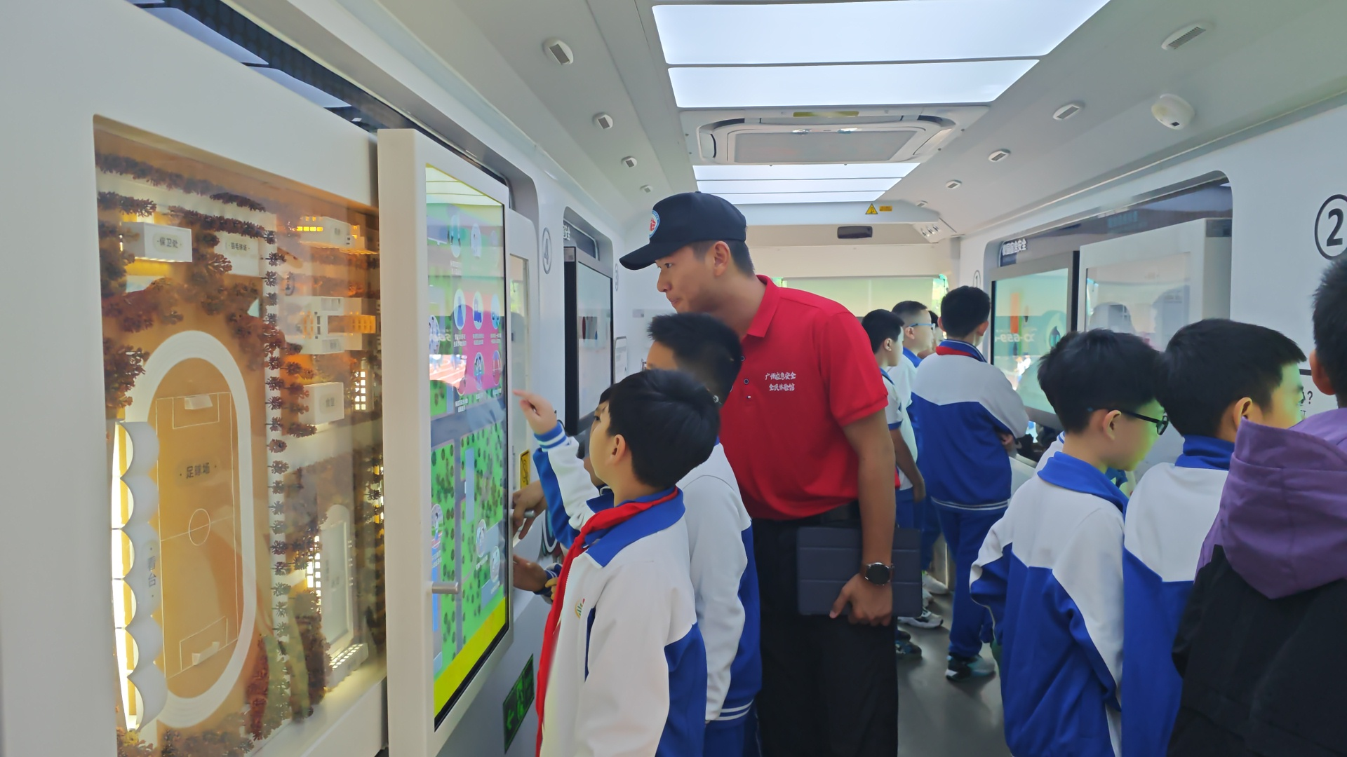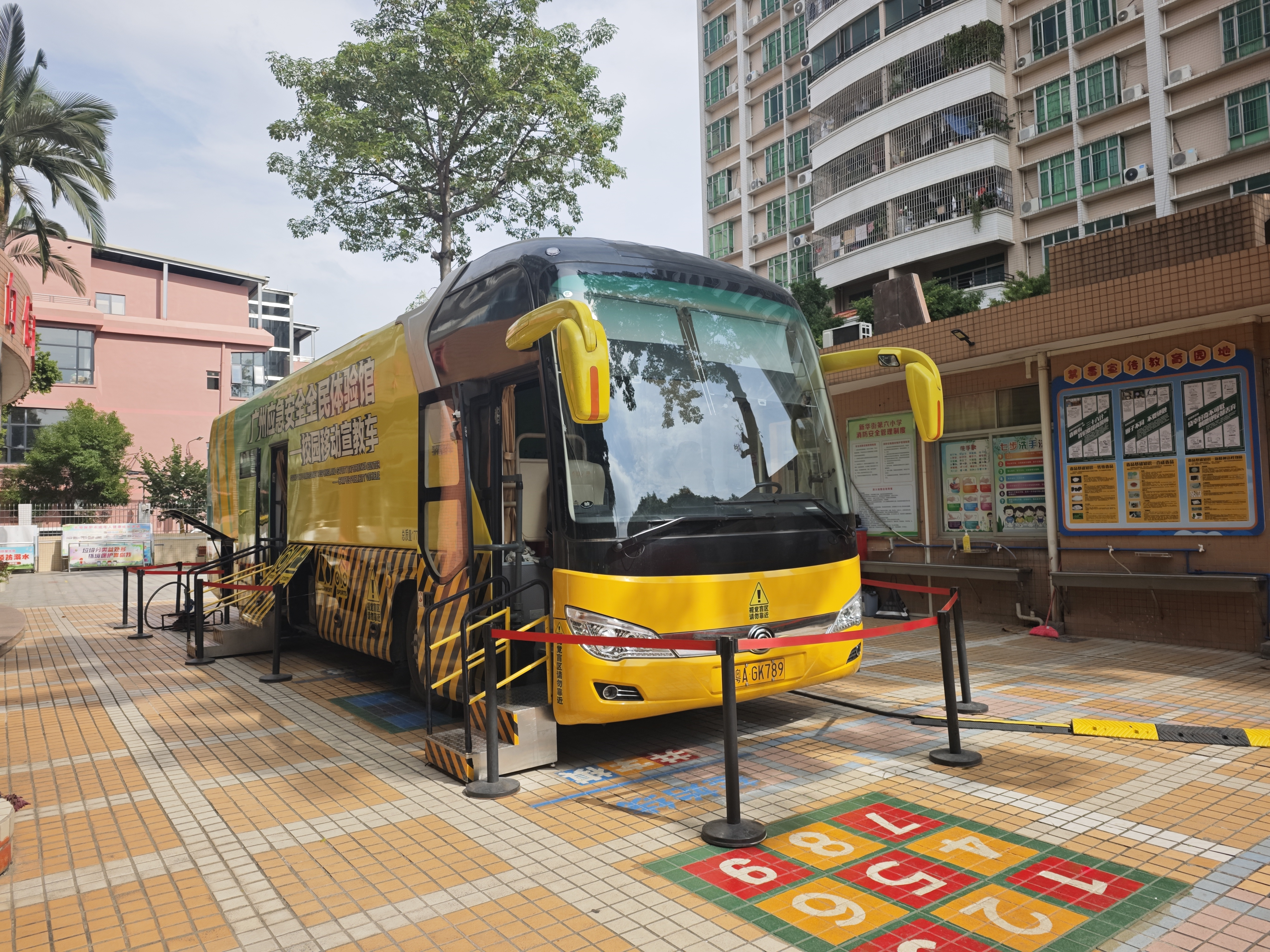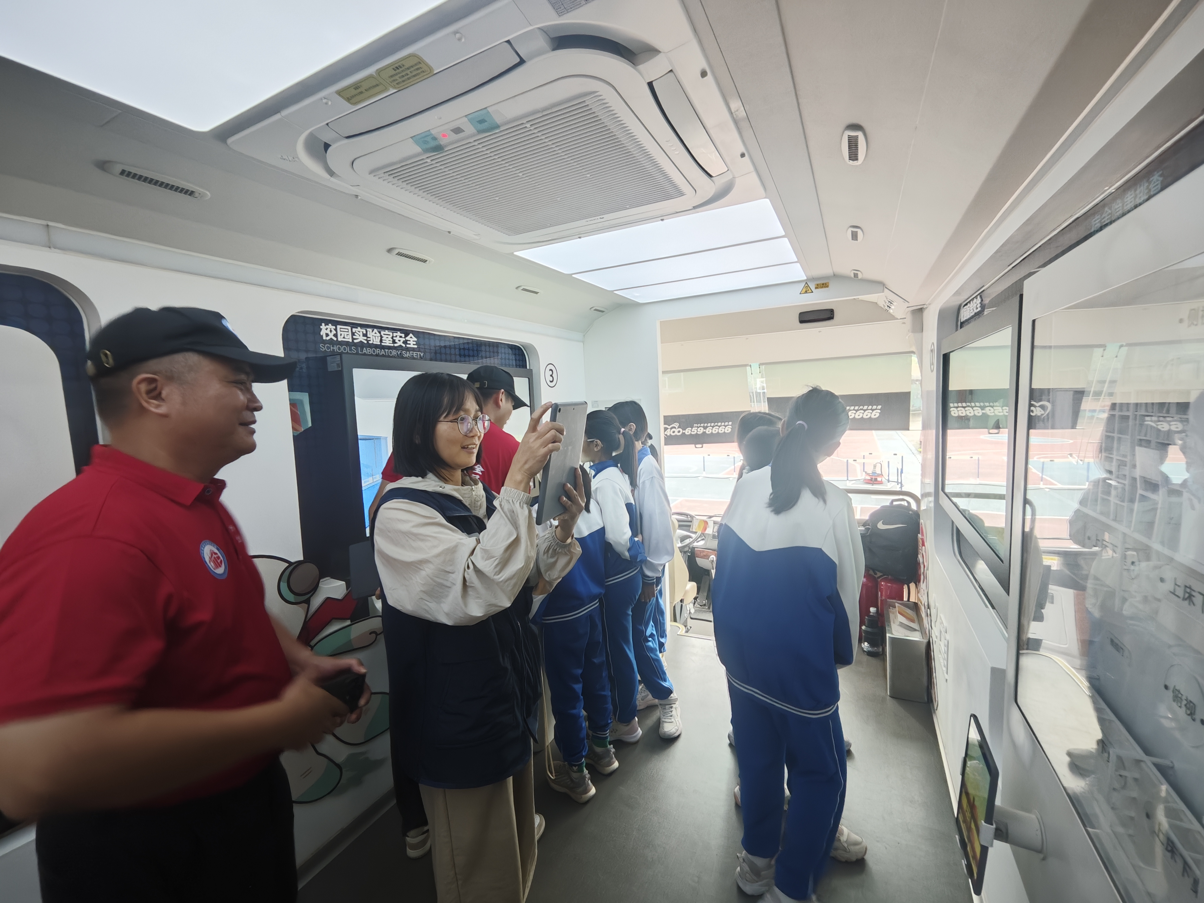 广州市应急安全移动宣教车成为活动的“知识宝库”,车内丰富的多媒体互动设备吸引了众多学生的目光。连宣传工作人员也被这些设备深深吸引,忍不住与学生一同参与体验,现场学习氛围热烈非凡。