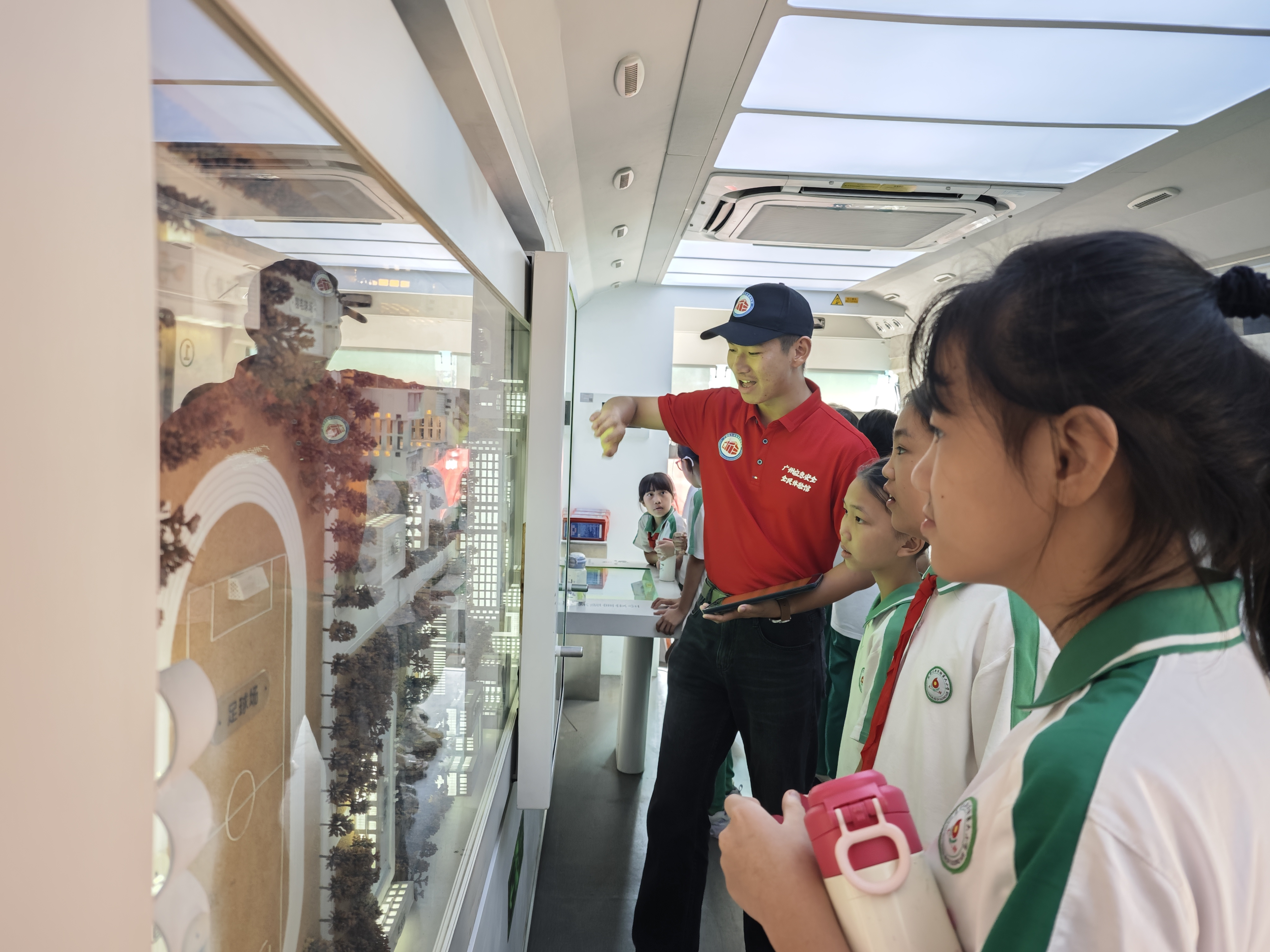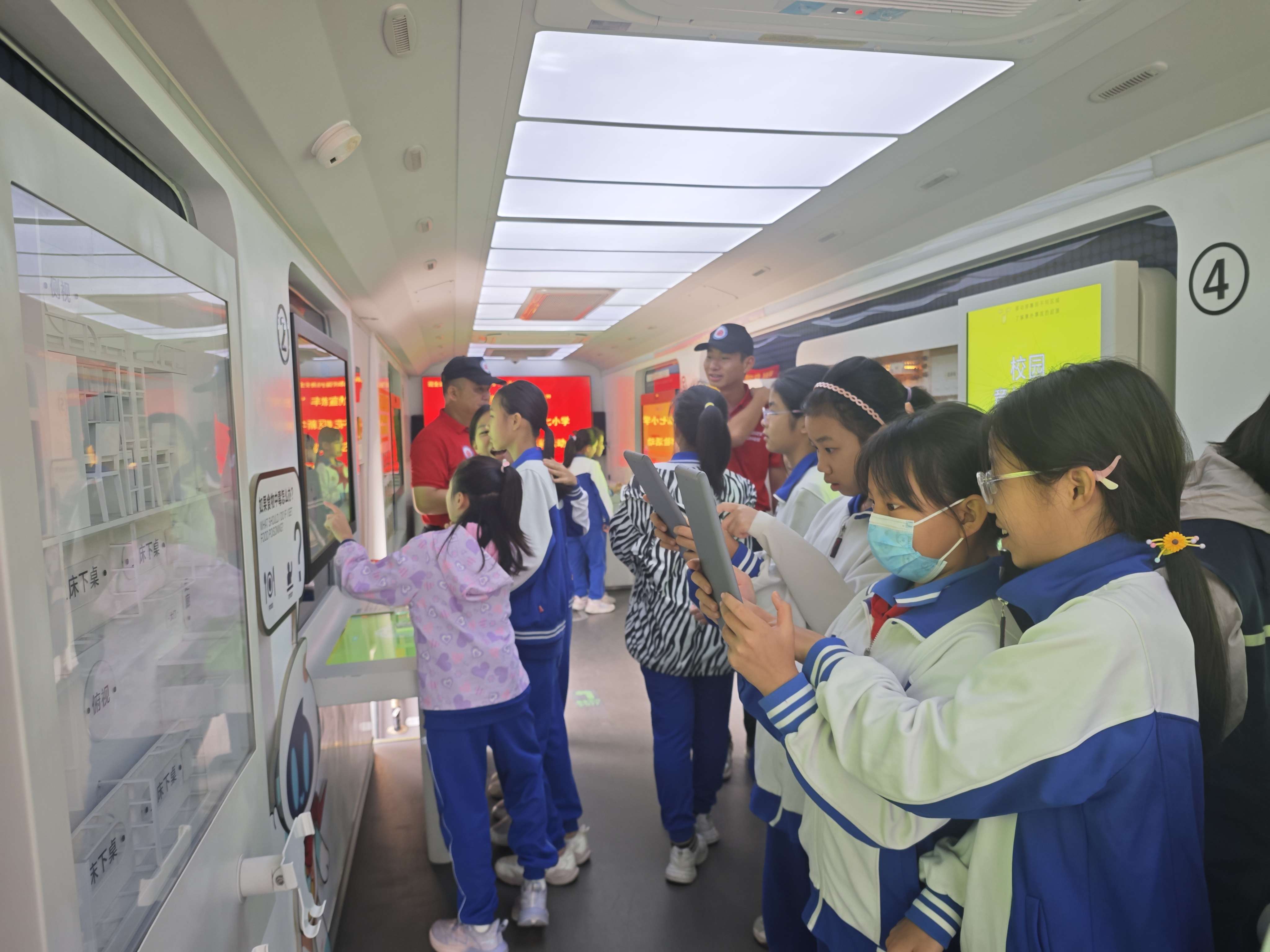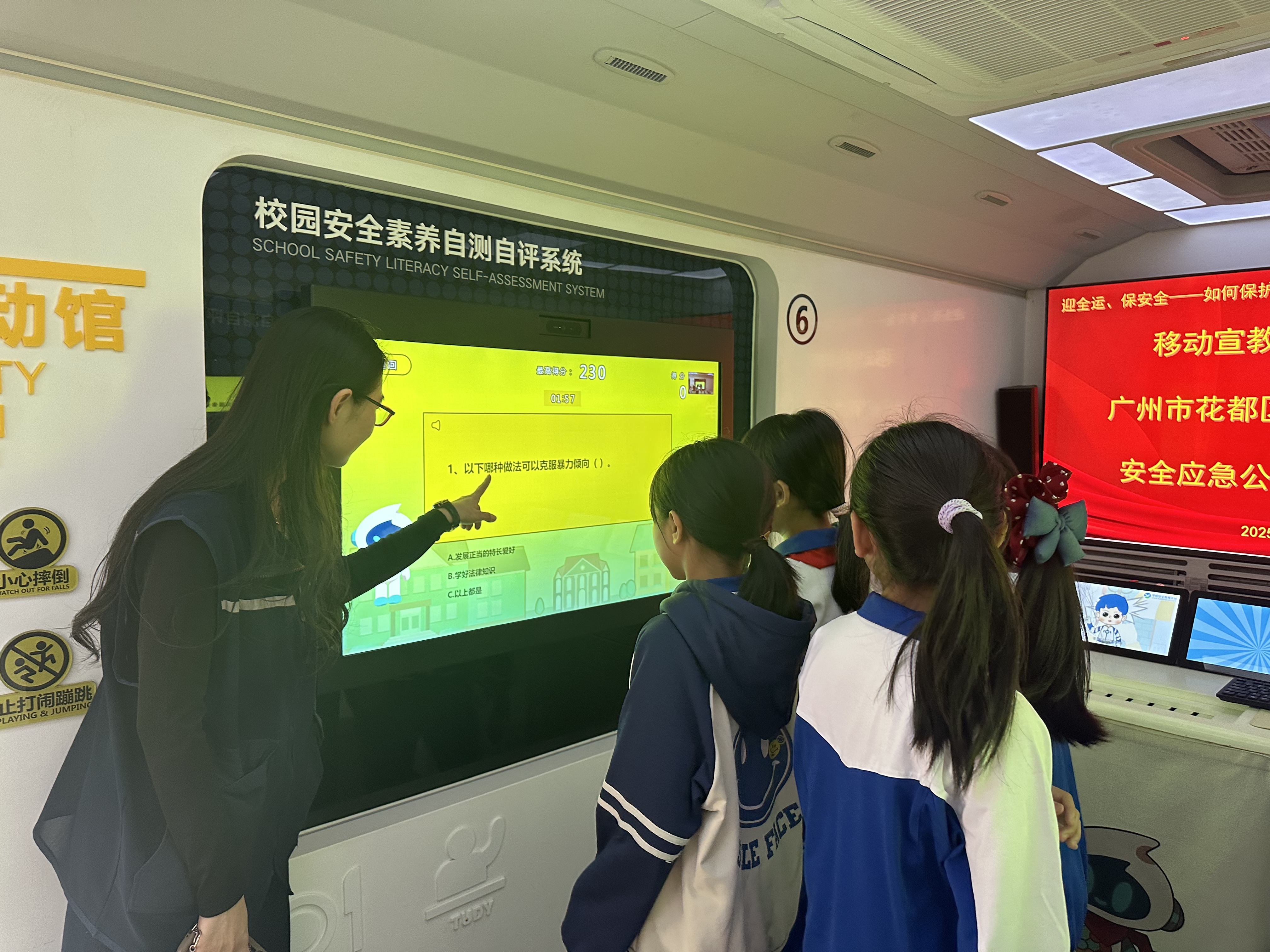 广州市应急安全移动宣教车成为活动的“知识宝库”,车内丰富的多媒体互动设备吸引了众多学生的目光。连宣传工作人员也被这些设备深深吸引,忍不住与学生一同参与体验,现场学习氛围热烈非凡。